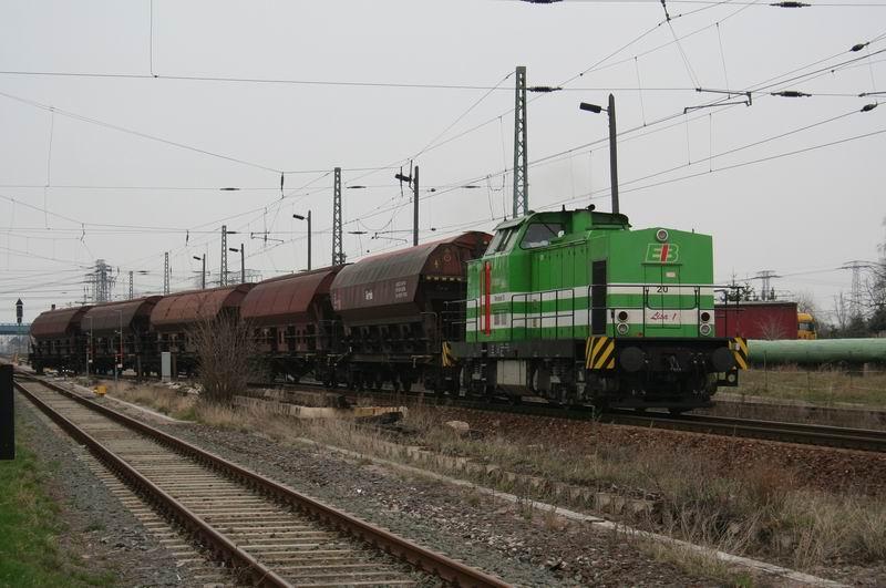 Lok 20 mit Tads-Wagenzug bei der Ausfahrt aus Industriebahnhof Erfurt Ost, Richtung EF Hauptbahnhof (10.04.2006)