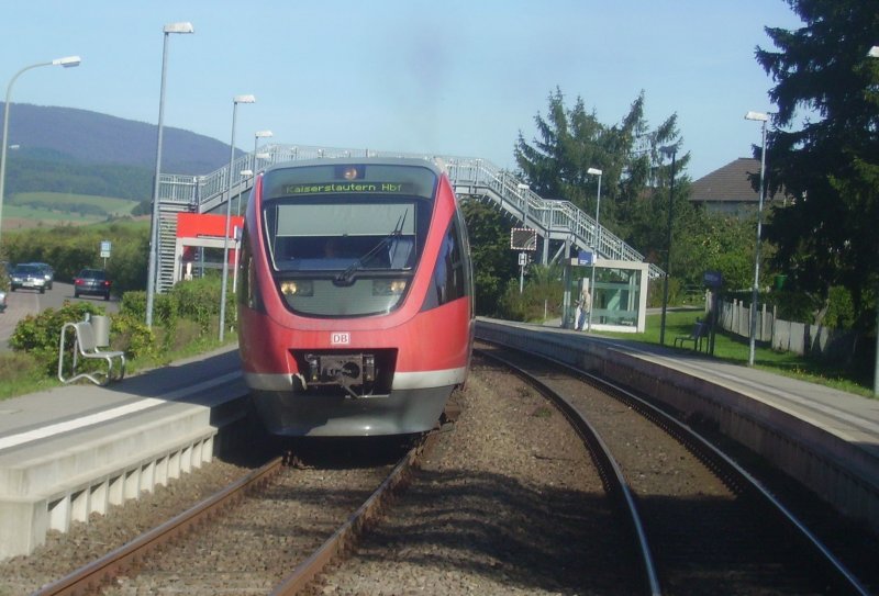 Wärend einer unsere Fahrten auf der Zellertalbahn kam uns gerade im Bahnhof Münchweiler der Ausfahrende 643 007 entgegen.