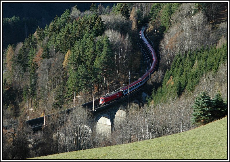 OIC 732 "FH Technikum Kärnten" von Villach nach Wien am 25.11.2006 bei der Querung des Wagnergraben Viaduktes.