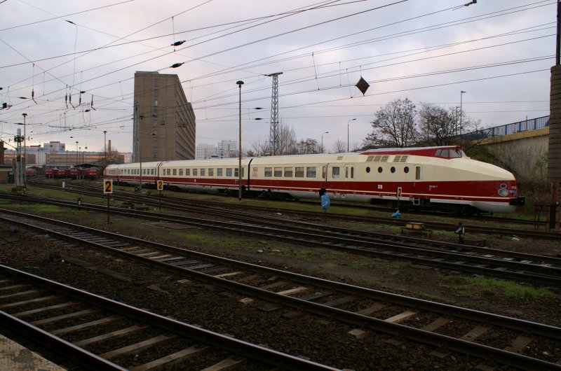 Der VT 175 015 aufgenommen am 10.12.05 in Berlin Lichtenberg. Schade das dieses schöne Fahrzeug so  vergammelt .