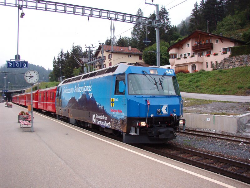 RhB REGIONALZUG 251 von Chur nach Disentis am 23.08.2000 bei der Hochwassermarke zwischen Reichenau und Trin mit E-Lok Ge 4/4II 611 - A - 3xB - D - Hinweis: gescanntes Dia