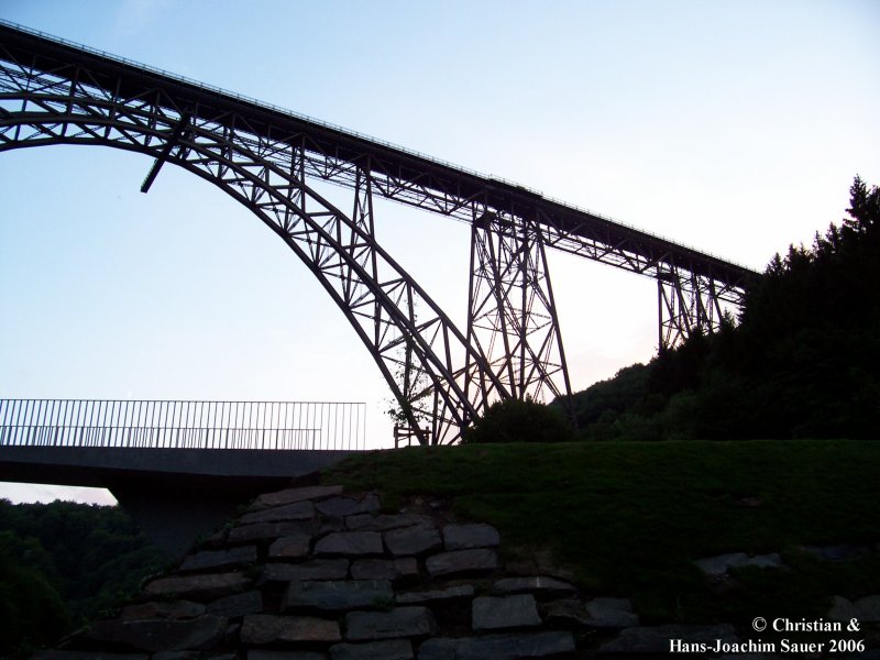 Die Müngstener Brücke verbindet die beiden Städte Remscheid und Solingen. Sie ist 107 Meter hoch, über 500 Meter lang und somit die größte stählerne Eisenbahnbrücke Deutschlands.