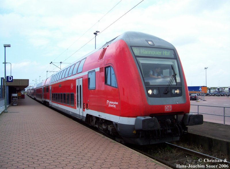 Hier in Norddeich Mole steht der RE nach Hannover Hbf im Juli 2006.