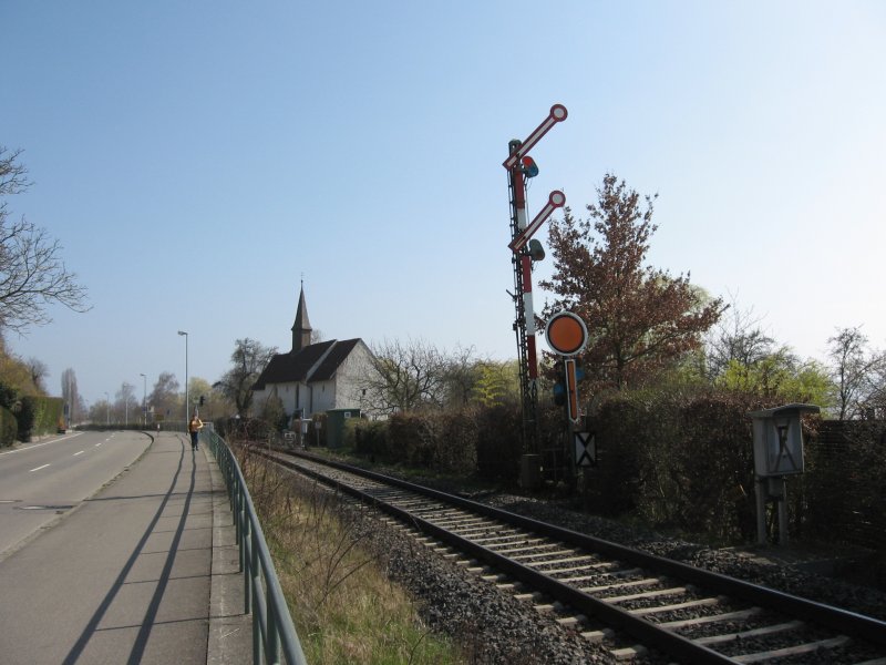 Nach Durchfahrt des Revier-Sprinters bietet sich dieses Bild auf die Form-Signale in Oberhausen-West während der Revier-Rundfahrt der Historischen Eisenbahn Gelsenkirchen am 31.03.2007