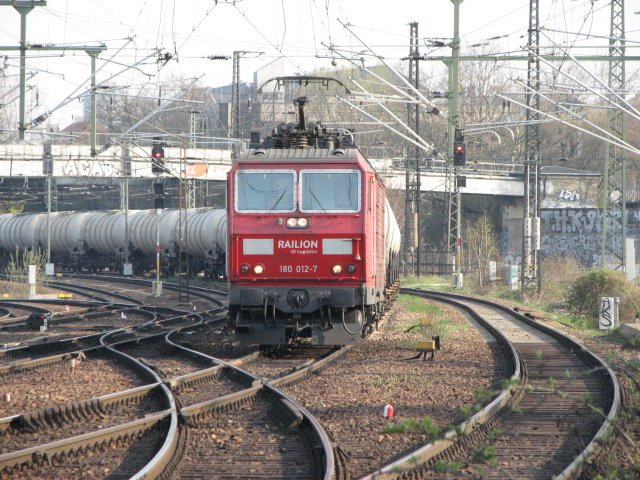 Knödelpresse 180 012-7 mit Kesselwagenzug zum Güterbahnhof Dresden-Friedrichstadt.2.04.07