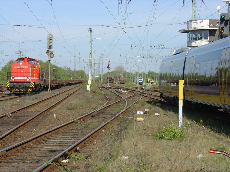 Blick in das Gleisvorfeld des Rostocker Hbf, wo die 362 594 auf neue Aufgaben wartet. März07