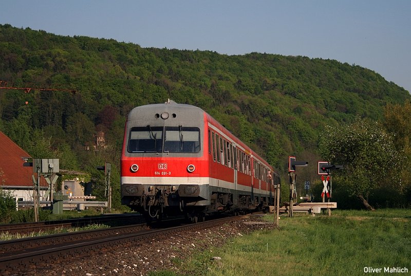 Die Br.628 344-4 bei der Ausfahrt in Aalen Hbf. Dieser Zug fuhr als IRE-Zug nach Ulm Hbf. Aufgenommen am 26.04.06