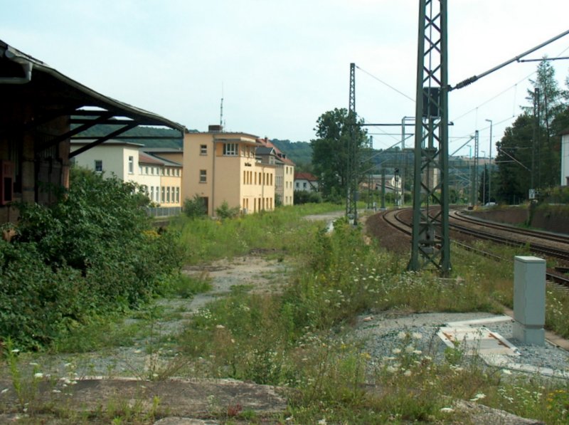 Blick auf das Stellwerk und das ehemalige Güterabfertigungsgebäude in Bad Kösen; 26.07.2007