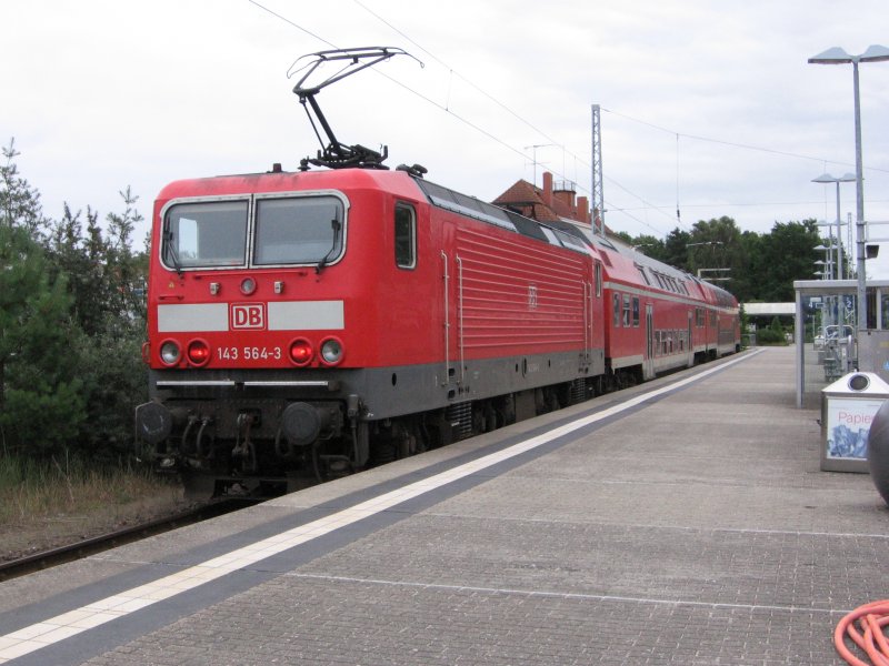 BR 143 mit RB nach Ostseebad Bint am 29.7.07 in Bergen auf Rügen.