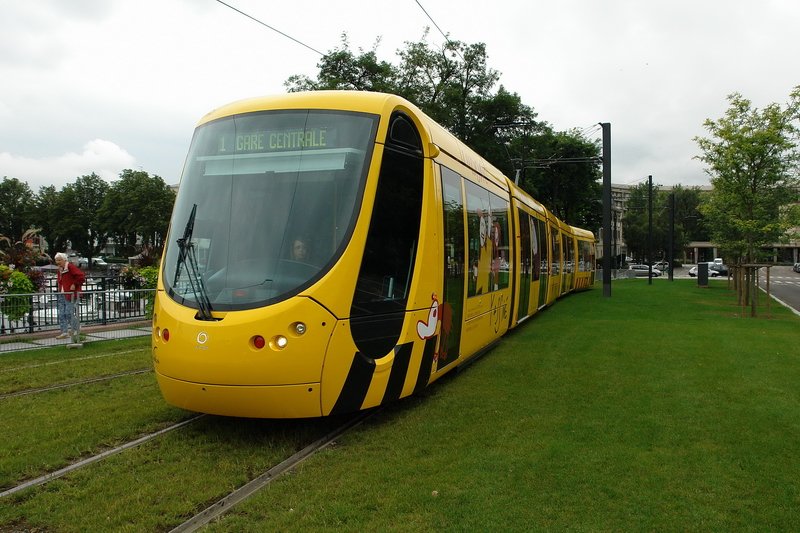 Citas Nr. 2018. Am Gare de Mulhouse sind die Arbeiten auf dem Vorplatz abgeschlossen. Alles sieht nun ordentlich aus an der Haltestelle und die moderne Strassenbahn der Firma Alston passt auch gut dazu. 8.8.2007