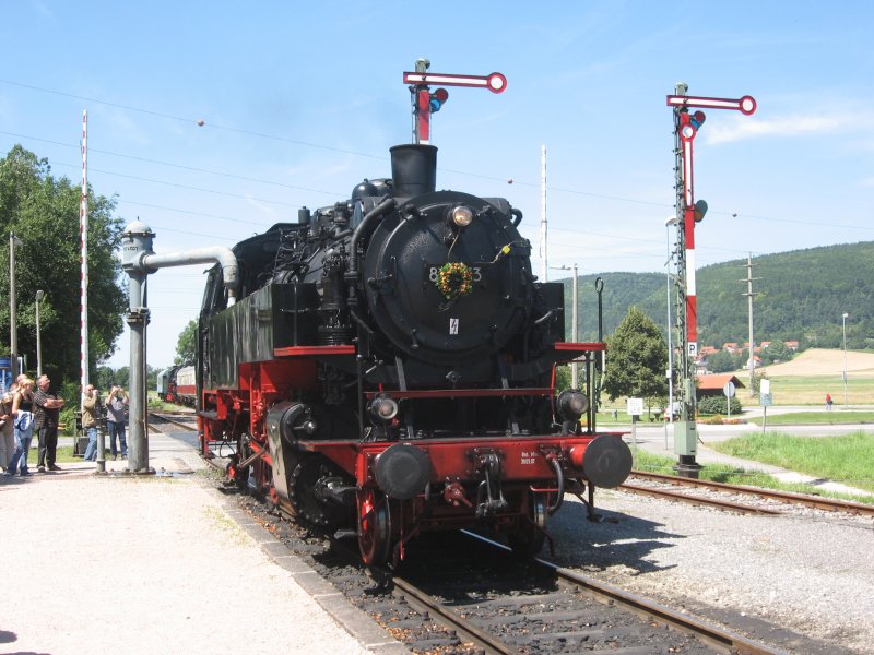 86 333 ist gerade mit dem Wasserfassen in Weizen fertig und wird sich gleich vor das Zugende setzen.1.8.07