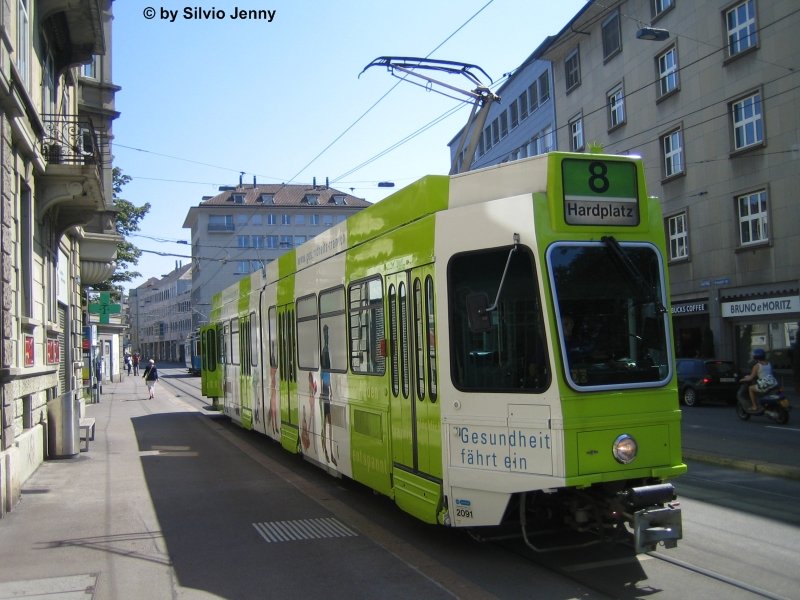 Nr. 2091 ''Gesundheitstram'' am 26.8.07 ausnahmsweise am Kreuzplatz. Wegen Bauarbeiten am Hottingerplatz wurde die Linie 8 via Kreuzplatz statt Kunsthaus zum Bellevue geführt.