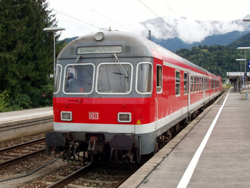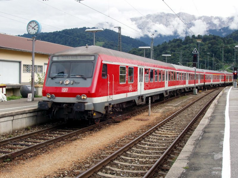 Ein zweiteiliger Pendelzug rangiert in Garmisch-Partenkirchen. 17.08.07