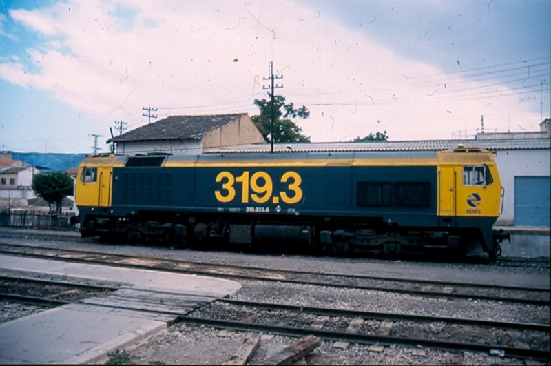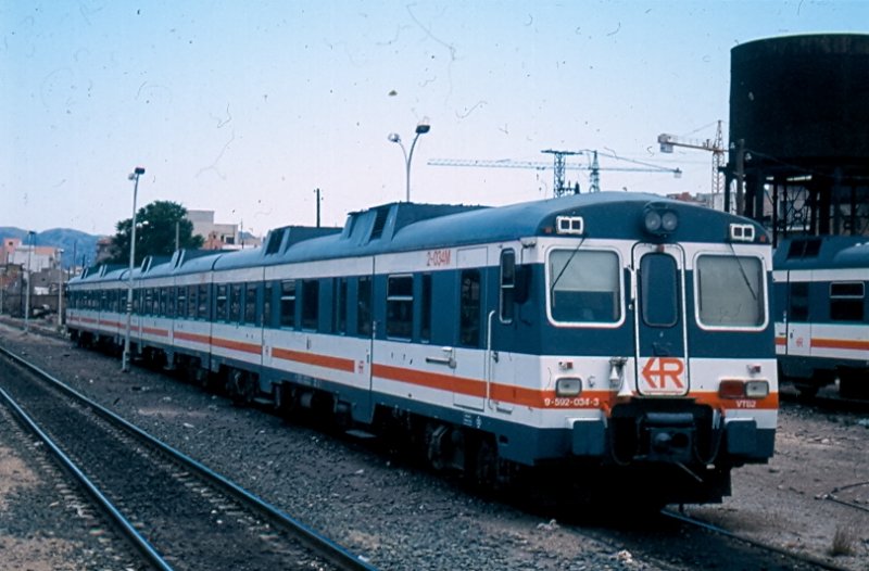 Hier wieder eine der verschiedenen Lackierungsvarianten der spanischen Baureihe 592. Hinweis: eingescanntes Dia