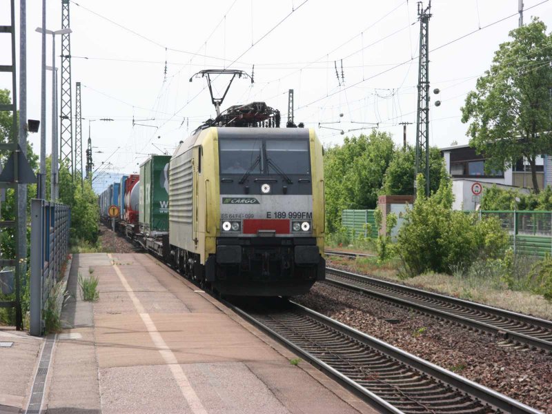 E 189 999 Fm fährt mit einem Wechselauflieger GZ durch den Bahnhof Blankenloch 4.5.07