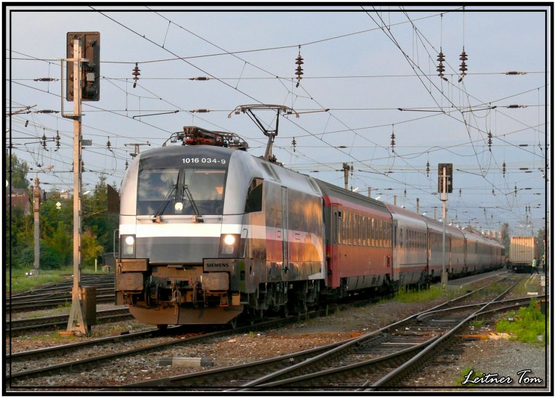 Railjet 1016 034 Spirit of Salzburg mit Zug EC 631 Alpen Adria Universität.