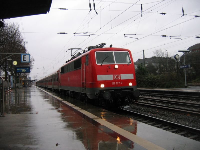 Der RE9 "Rhein-Sieg-Express" von Aachen Hbf nach Siegen, wird hier von 111 150 aus Düren gezogen. 01.12.07