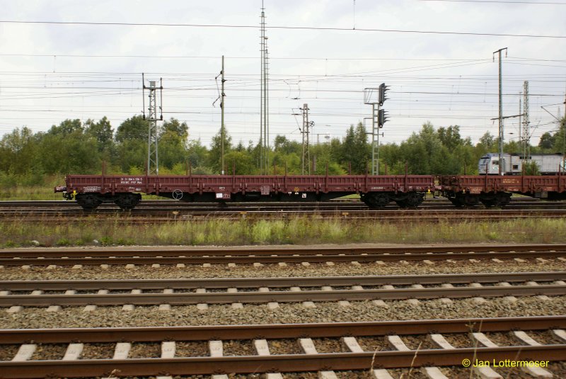 2.09.2007: UnbeladenerFlachwagen beim durchfahren des Lehrter Güterbahnhofs.
