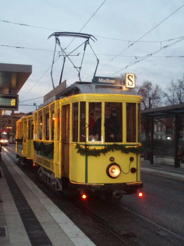 Zürcher Weihnachtstram am 20.12.07 nahe dem Hauptbahnhof