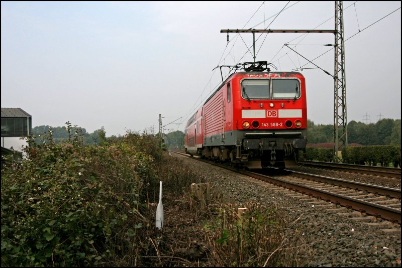 Bügelfalte vorne und hinten. Diese kuriose Reihung war am 2.5.2007 als RB 15468 von Heidelberg nach Frankfurt unterwegs. Hinten hing die abgeügelte Bügelfalte 110 436
