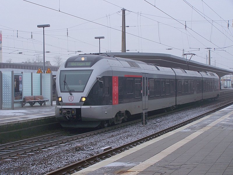 Ein 23er (So nennt Abellio diesen 3Teiligen Flirt) als RB40 nach Hagen bei der Ausfahrt vom Bochumer Hbf am 20.12.07