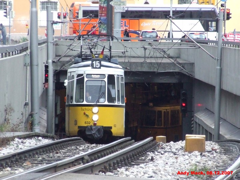 Ein GT-4 auf der 15er fährt seine letzten Planmäßigen Kilometer auf der Linie 15, die wenig später in die U15 umgestellt wird... (08.12.2007)