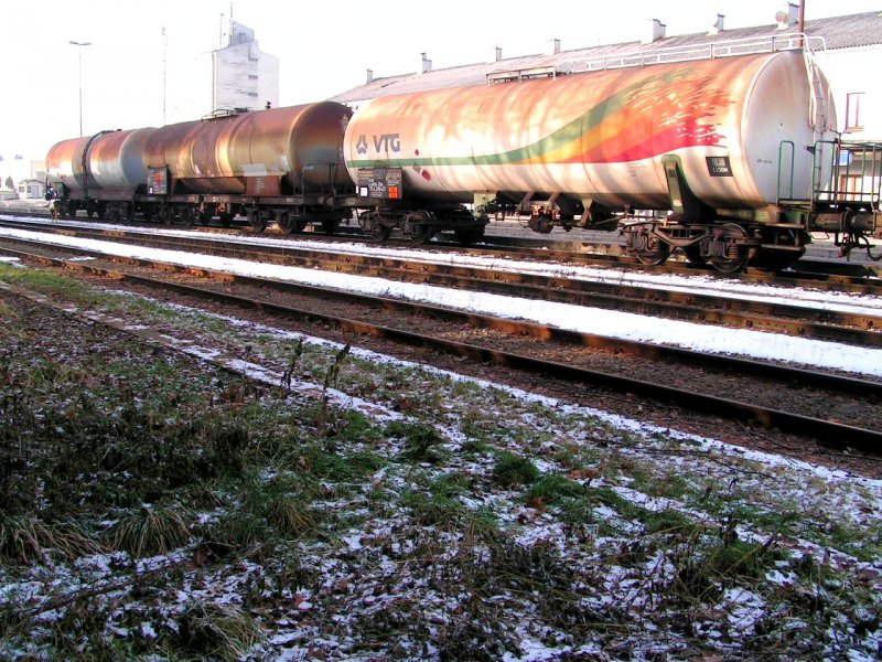 Zas_33 81(VTGA)7854208-4 (Heimatbf. Strasshof) ist mit zwei weiteren leeren Kesselwagen im Gz68807 eingereiht; 071221