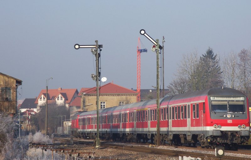110 484-3 zieht am 15.12.07 RB 37158 von Donauwörth nach Aalen, aufgenommen bei der Ausfahrt aus dem Goldshöfer Regionalbahnhof.