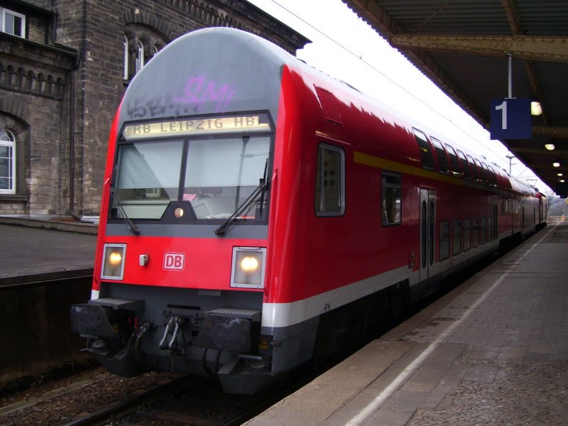 Steuerwagen der RB 26718 von Weißenfels nach Eilenburg Ost am Bahnsteig 1 in Weißenfels; 17.12.2007