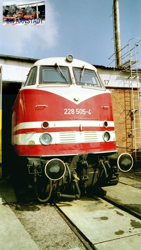 BR 228 (V180) im Bw hist. Arnstadt, Aufnahme um 2000