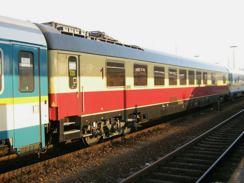 Ein alex Speisewagen, aufgenommen am 21.12.2007 in Schwandorf. Dieser Wagen soll nicht in die neuen alex Farben umlackiert werden!