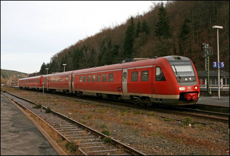 612 545/045 und 612 545/046 sind als RE17 (RE 3910) "Sauerland-Express nach Hagen, in Brilion-Wald eingefahren. (28.12.07)