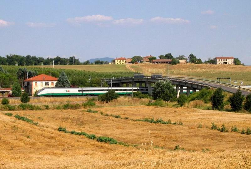Ein EuroStar in voller Fahrt. Das Schleifen der Panthos ist deutlich zu hören. Aufnahmen habe ich von der Strasse zwischen Brolio und Castroncello aus gemacht, falls da mal jemand in der Nähe ist