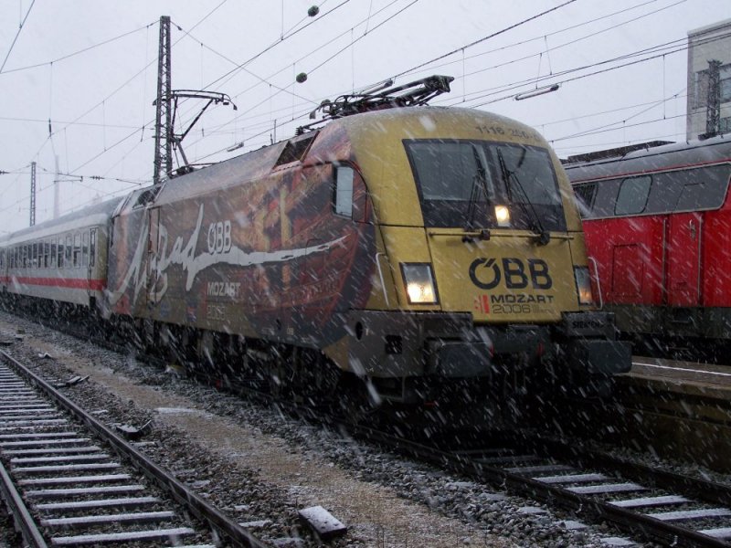 Die Einfahrt eines 411er in Plattling. Es ist der Premierenzug von Frankfurt nach Wien. (8.12.07)