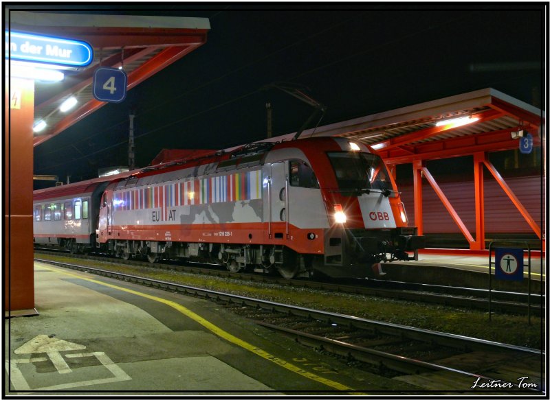 EU Taurus 1216 226 fährt mit EC 156 Zagreb in den Bahnhof Bruck an der Mur ein. 13.12.2007