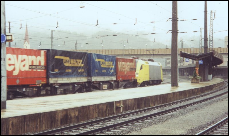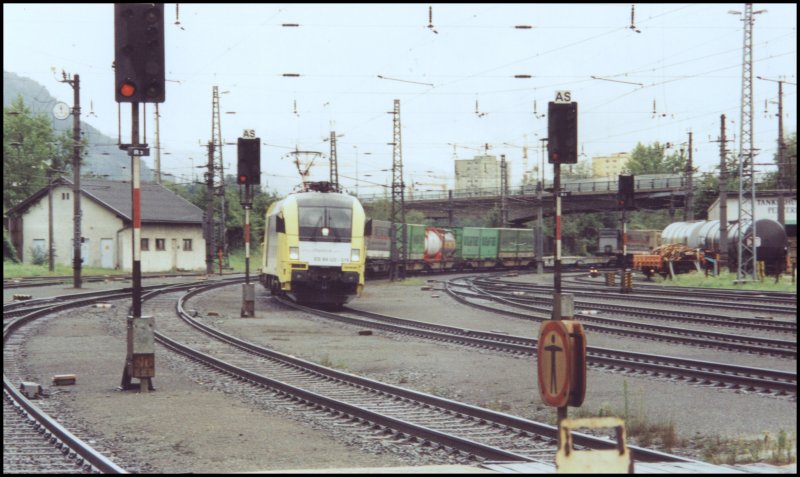 Einige Stunden später kommt die ES64U2-019 mit ihrer Rückleistung zurück nach München. Hier bei der Einfahrt in den Bahnhof Kufstein, im Sommer 2005.