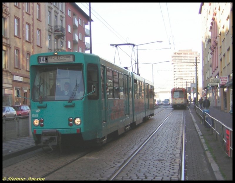 Am Wochenende 20./21.01.2007 wurde die Haltestelle Hauptbahnhof bauarbeitsbedingt nicht angefahren, der Gleisbogen vom Hauptbahnhof in die Münchner Straße wurde erneuert. Alle Linien, die normalerweise die Haltestelle vor dem Haupteingang des Hauptbahnhofes auf der Ostseite anfahren, wurden an die Haltestelle Hauptbahnhof Süd umgeleitet. Auch die Linie 16 war davon betroffen, hier am 21.01.2007 mit dem S-Triebwagen 210 auf dem 6.Zug beim Verlassen der Haltestelle, leider erreichte die Abendsonne nur noch die Hochhäuser, nicht mehr die Schluchten dazwischen.