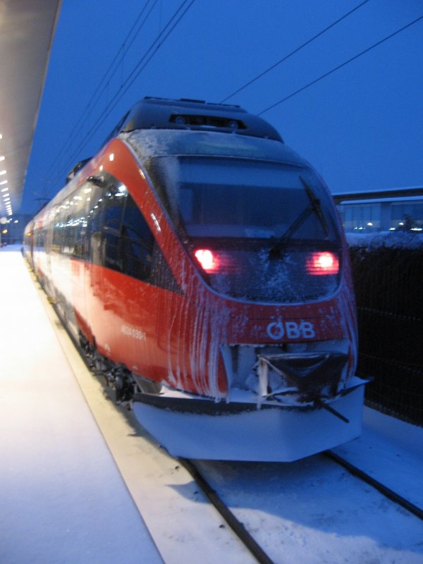 Ein Talentetriebwagen als R nach Bregenz von Bludenz am 27.01.2007 in Riedenburg.