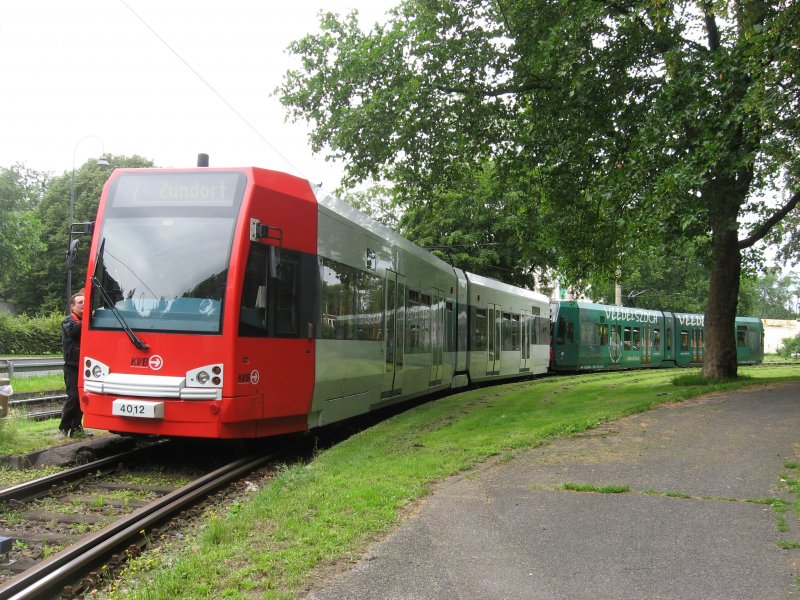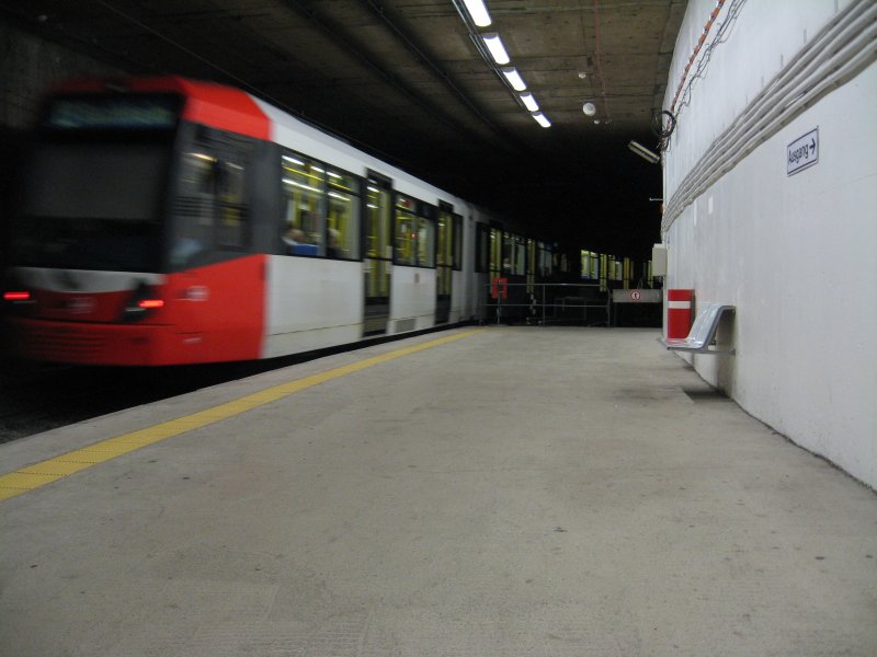 ... fast schon symbolisch. Eine Stadtbahn der Linie 19 verlässt am 01.07.2007 die provisorische Stumpfendstelle "Breslauer Platz / Hbf". Ab dem 09.07.2007 wird die vor ca. einem Jahr eingerichtete Haltestelle zurückgebaut. Ab dem 05.08.2007 sollen dann wieder Bahnen zwischen "Dom / Hauptbahnhof" und "Ebertplatz" fahren, allerdings ohne Halt an der zukünftigen Haltestelle "Breslauer Platz / Hbf", die z.Zt. erst im Rohbau fertiggestellt ist.
