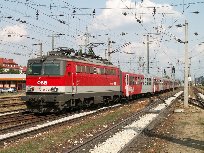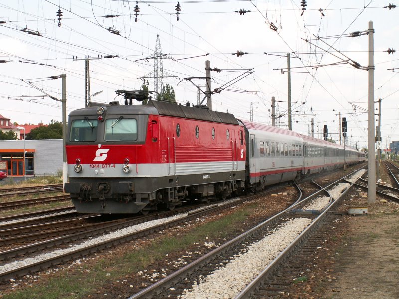 Ausfahrt des R 3018 nachgeschoben mit 1016 047 aus dem Bahnhof Wels am 30. Juni 2007. Wenige Sekunden später hat Thomas Aichhorn diesen Zug ebenfalls aufgenommen!