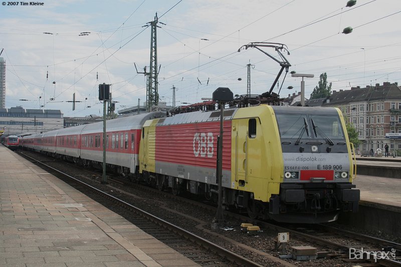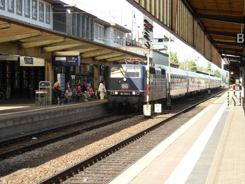 181 206-4 mit IC 436 von Emden nach Luxembourg in Trier Hauptbahnhof. 02.05.07 Wen es nicht auffällt: Vorne auf der Lok ist noch das alte Bundesbahn Logo drauf.