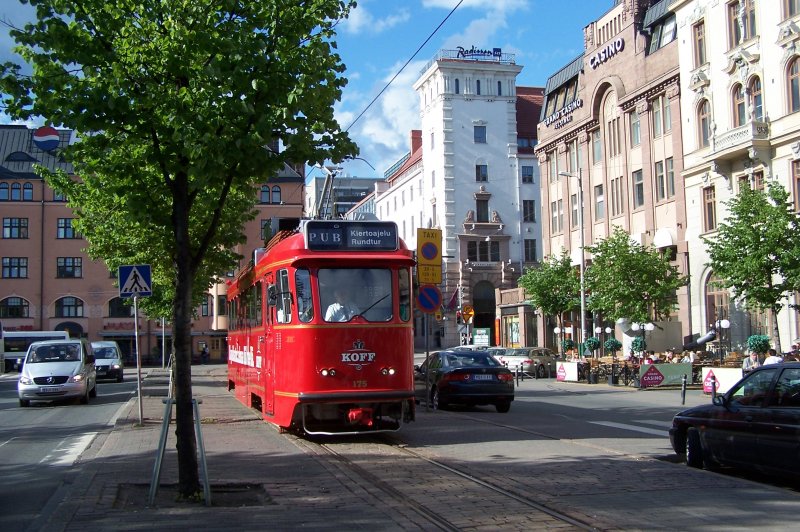 Aus dem HM V mit der Nummer 15 wurde der Ravintolavaunu (Restaurantwagen) 175 gebaut. Im Sommer dreht er regelmäßig ab der Mikonkatu seine Runden. Die Tour folgt in gemächlicher Fahrt der Linie 3B, unterquert die Eisenbahnanlagen im Zuge der Helsingegata (Linie 8), umrundet die Tölöbucht (Linie 4, 7 und 10), fährt durch die Alexandersgata und biegt am Senatsplatz Snellmaninkatu (Linie 7) und verläßt die Liisankatu (Linie 7) in Richtung Kaisaniemenkatu - Vilhonkatu zum Abfahrtsort. Die Einrichtung erfolgte mit Bar und Tischen sowie einer Toilette, an deren Rückseite ein Monitor angebracht ist, über den man die Fahrt aus der Sicht des Fahrers erlebt. Am 21.06.2007 erreicht der Triebwagen 175 aus der Vilhonkatu kommend die Endstelle am Hauptbahnhof.