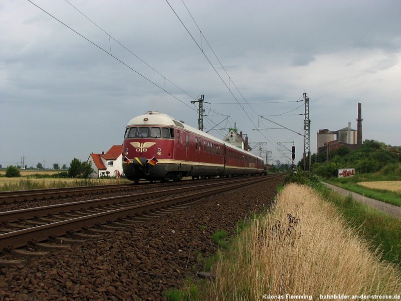 Der VT08 hat soeben Weetzen verlassen und fährt in Richtung Altenbeken. Die Aufnahme entstand am 01.07.07.