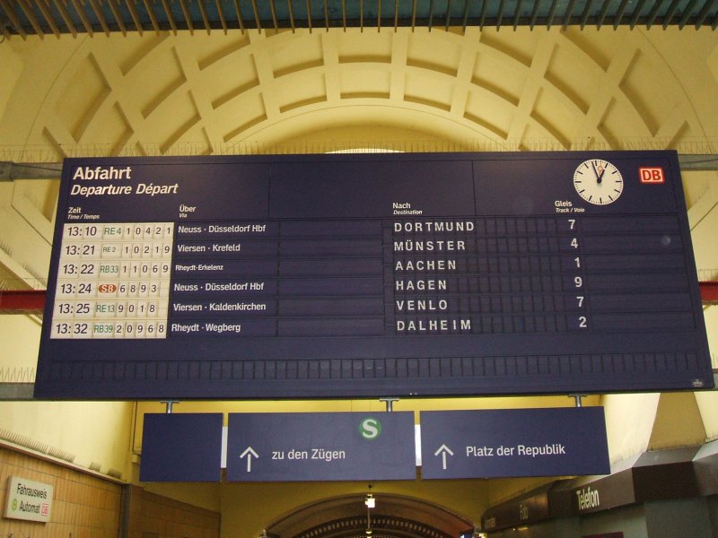 Der Zugzielanzeiger in der Eingangshalle des Mönchengladbacher