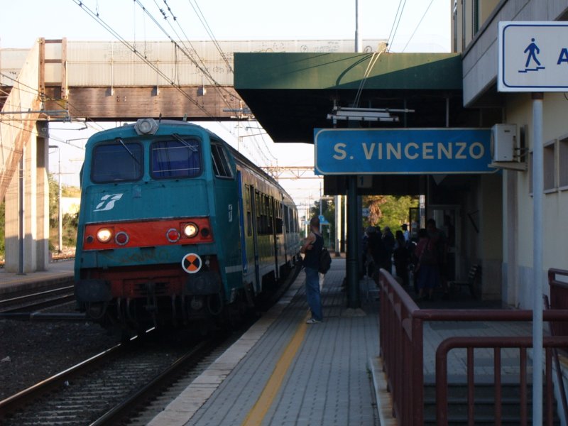 Ein FS Wendezug erreicht gerade den Bahnhof San Vincenzo (Juni 2005)
