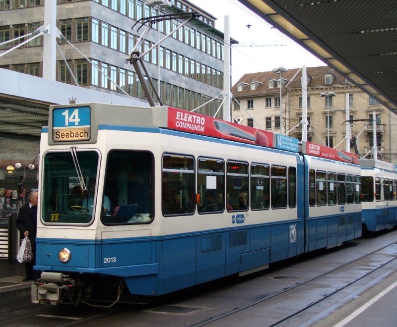 VBZ - Be 4/6  2013 bei der Haltestelle vor dem SBB Hauptbahnhof in von Zürich am 21.01.2007