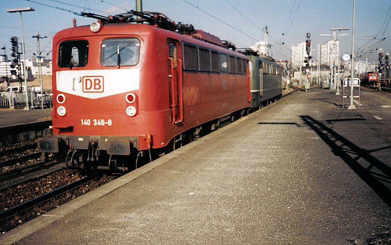 140 346-8 und eine unerkannt gebliebene 151 am 09.02.2000 in Stuttgart Hbf.