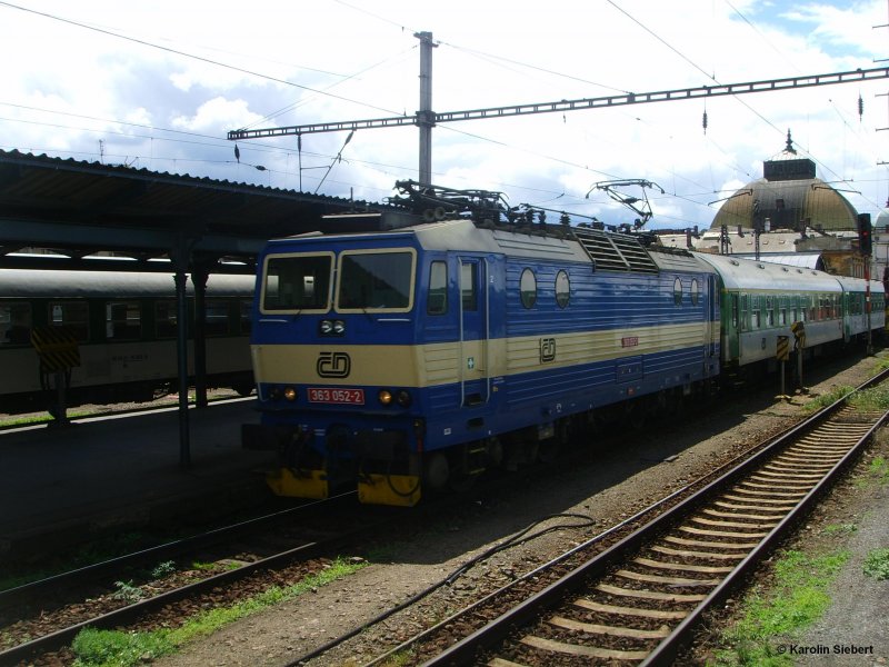 363 052 aus einem Zug heraus fotografiert am 23.06.2007 in Plzen