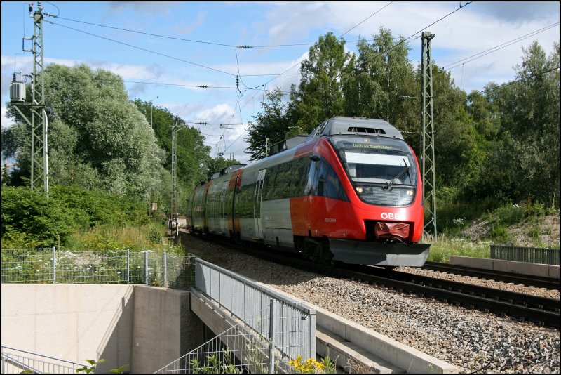 Seitenaufnahme des 4023 005  MARKTGEMEINDE OBERALM . Aufgenommen am 26.06.07 als RB 5068 (S3) von Berchtesgaden Hbf nach Schwarzach St.Veit.
