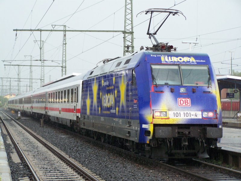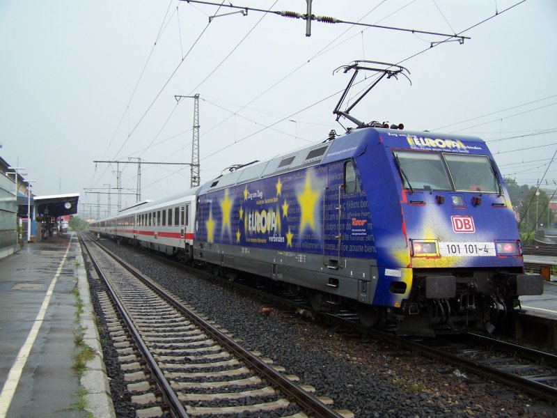 Am Freitag den 20.Juli 2007 fuhr Br.101 101-4  Europa  mit einem IC von Karlsruhe Hbf nach Nürnberg Hbf. Hier im Bahnhof Aalen. Nächster Halt: Ellwangen.